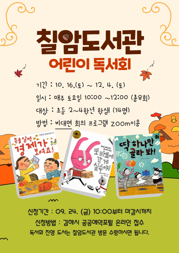 칠암도서관 <어린이 독서회> 모집 안내
