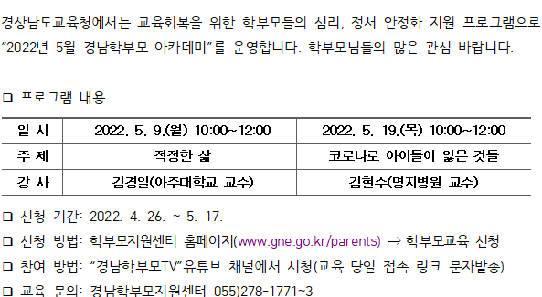 2022년 5월 경남학부모 아카데미 신청 안내