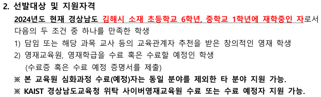 인제대학교 영재교육원 심화과정 2차 신입생 모집 안내